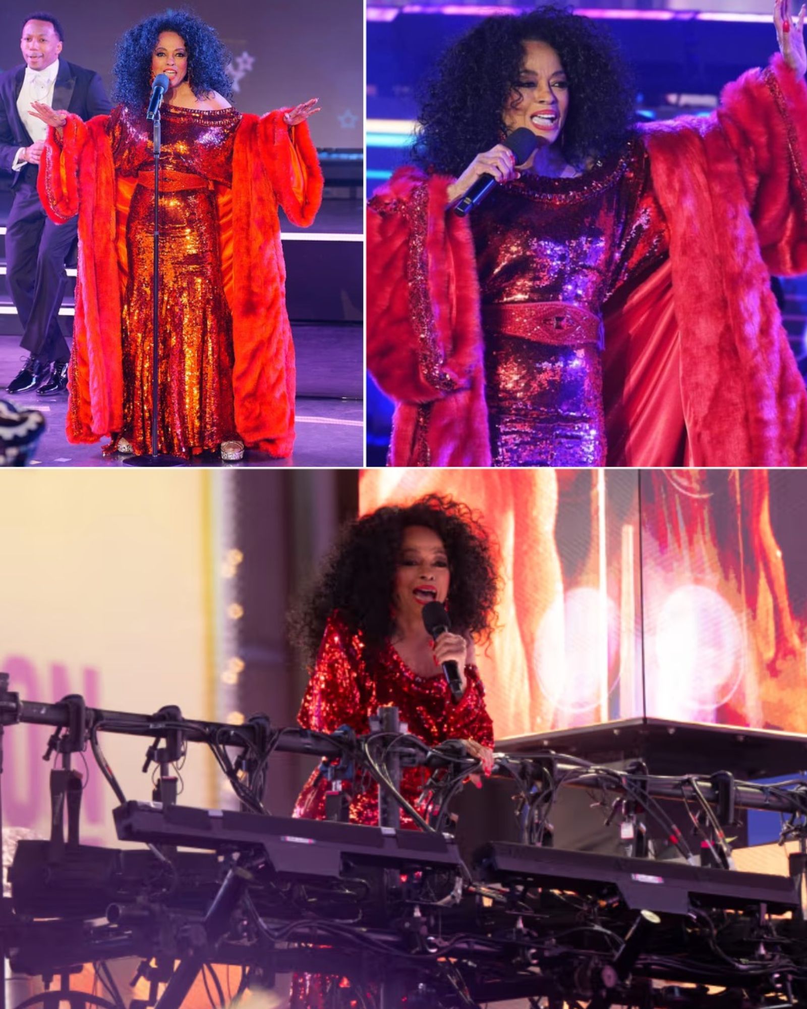 Wearing a dazzling red sequined gown, Ross performed a powerhouse set featuring fan-favorites like “Upside Down,” “Take Me Higher,” and “Ain’t No Mountain High Enough.” Part of her electrifying performance took place from a raised platform above the cheering crowd, just moments before the iconic ball drop that ushered in 2026.