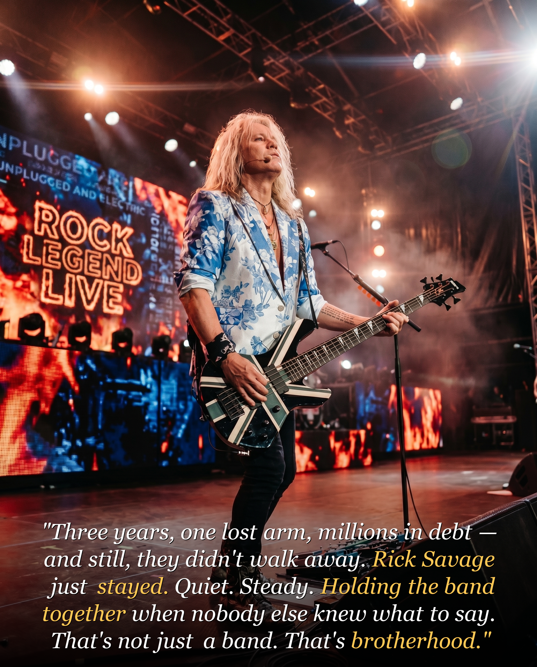 Def Leppard has always had larger-than-life energy, but every great band also needs balance. In the hardest stretch of the Hysteria years, Rick Savage helped provide that balance. Not with drama. Not with grand claims. With presence.