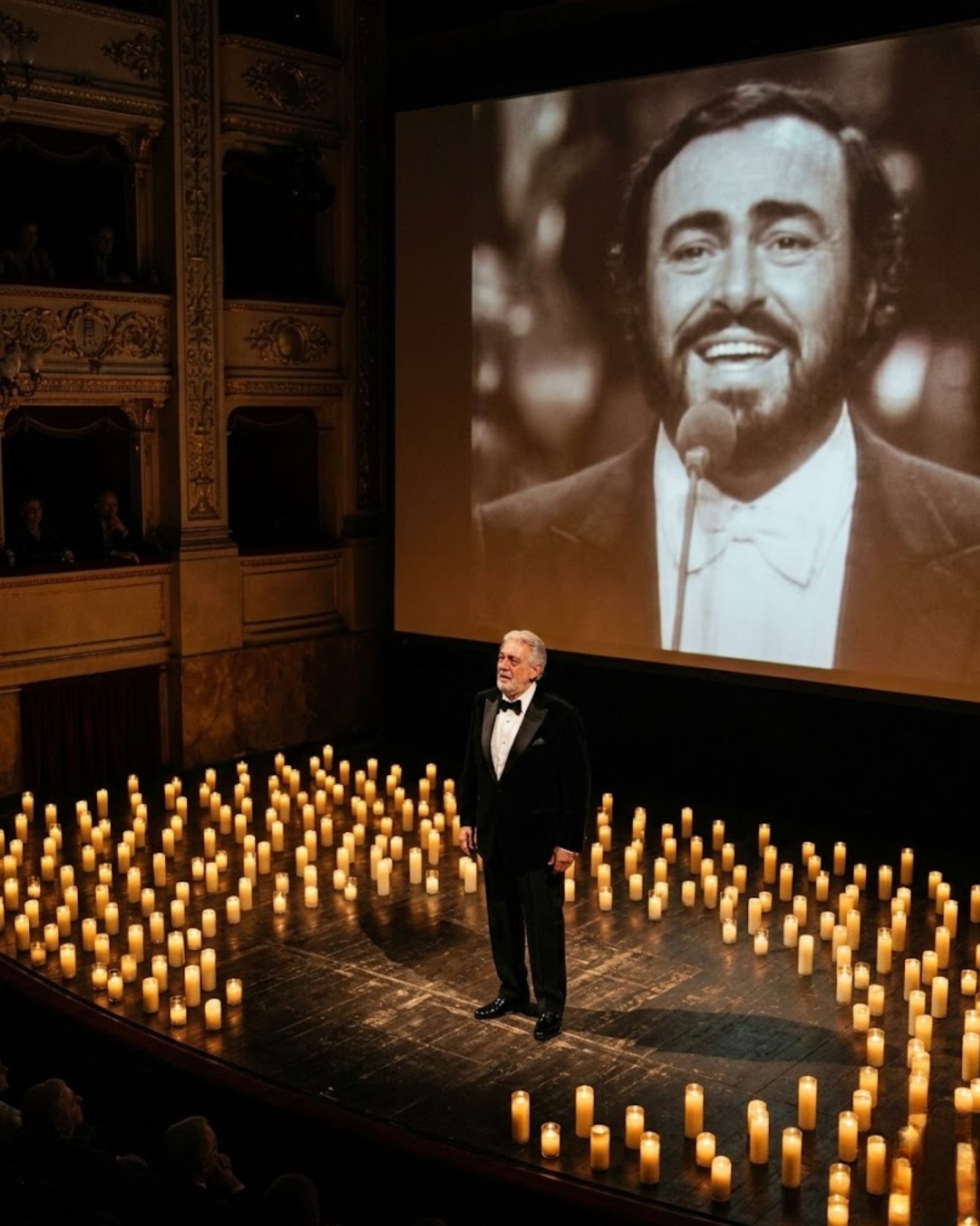 Then Plácido Domingo leaned slightly toward the microphone. He didn’t grandstand. He didn’t deliver a speech built for headlines. Plácido Domingo simply whispered something to the screen — a few soft words meant for Luciano Pavarotti more than for anyone else.