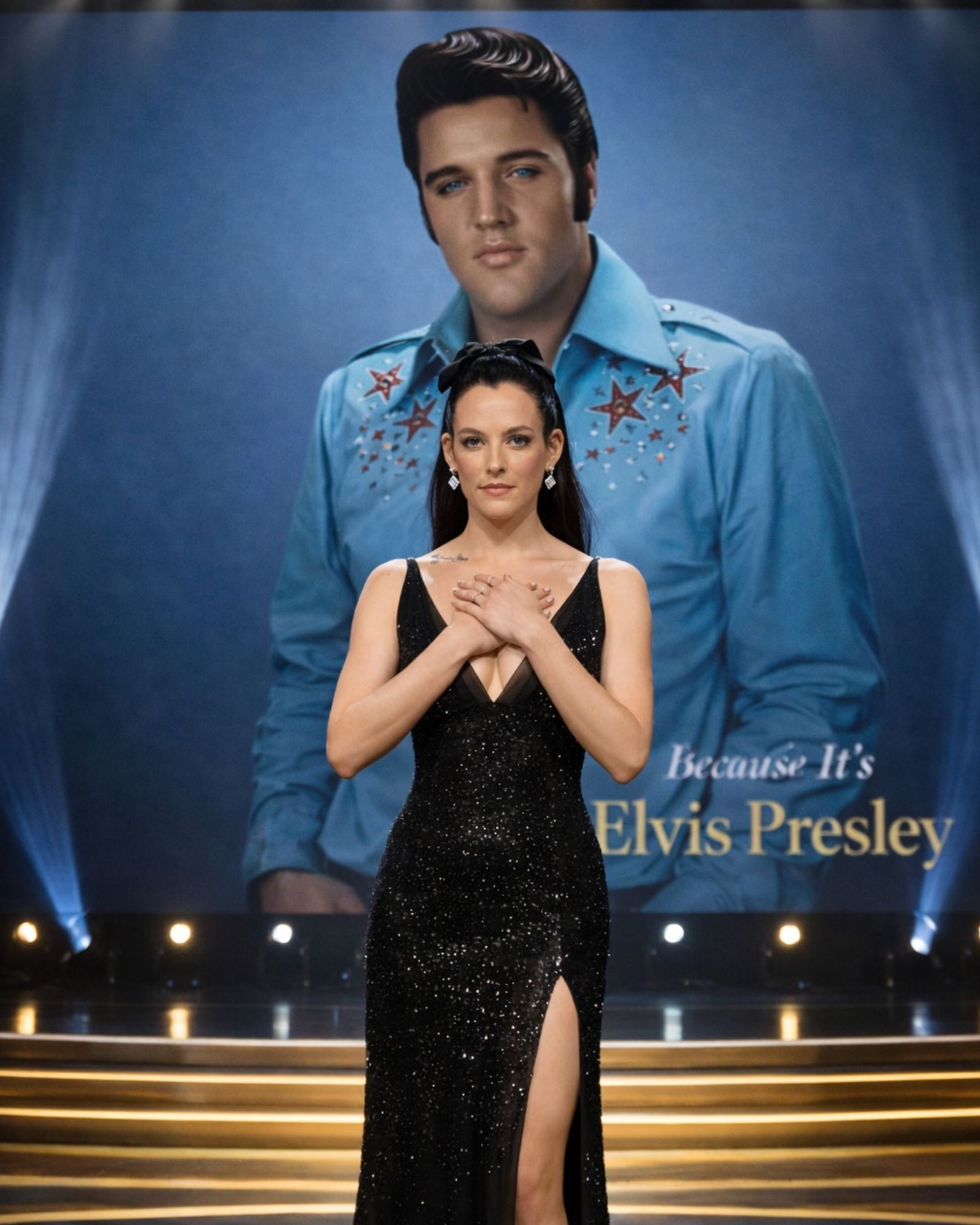 Then came a subtle but unmistakable change in Riley’s demeanor. As Elvis’s performances intensified — with songs like “Suspicious Minds” swelling through the room and gospel-inspired harmonies lingering in the air — her gaze seemed to drift inward.