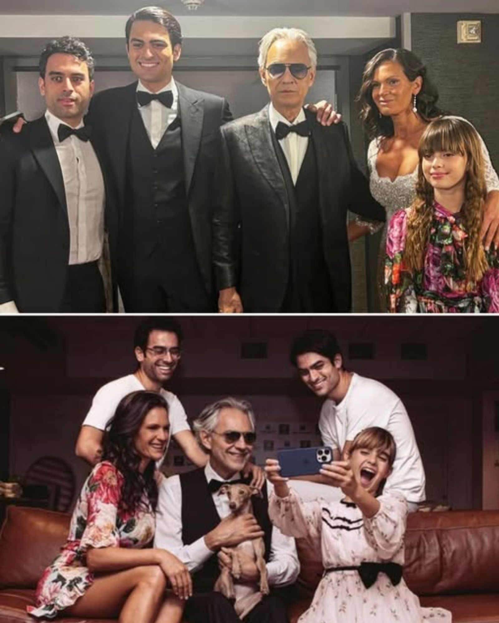 I just saw a photo that truly stopped me in my tracks. It wasn’t staged or polished, not the kind of image made for album covers or magazine spreads. It was a quiet moment — Andrea Bocelli standing beside his wife, Veronica, with their children, Matteo and little Virginia. Just a family, captured in the kind of warmth you can’t fake.