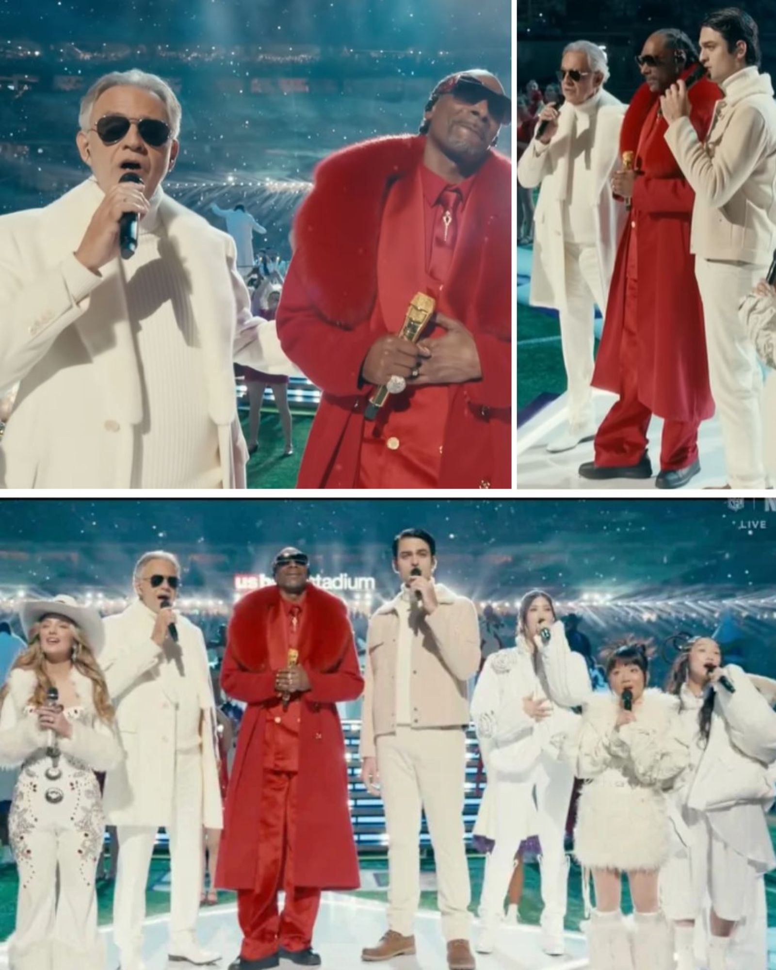 Hosted by , the Holiday Halftime Party is known for its playful, larger-than-life energy. Yet instead of clashing with that spirit, the Bocellis’ refined performance grounded the entire celebration. It served as a reminder that holiday music — when delivered with sincerity — can transcend genre, generation, and expectation.