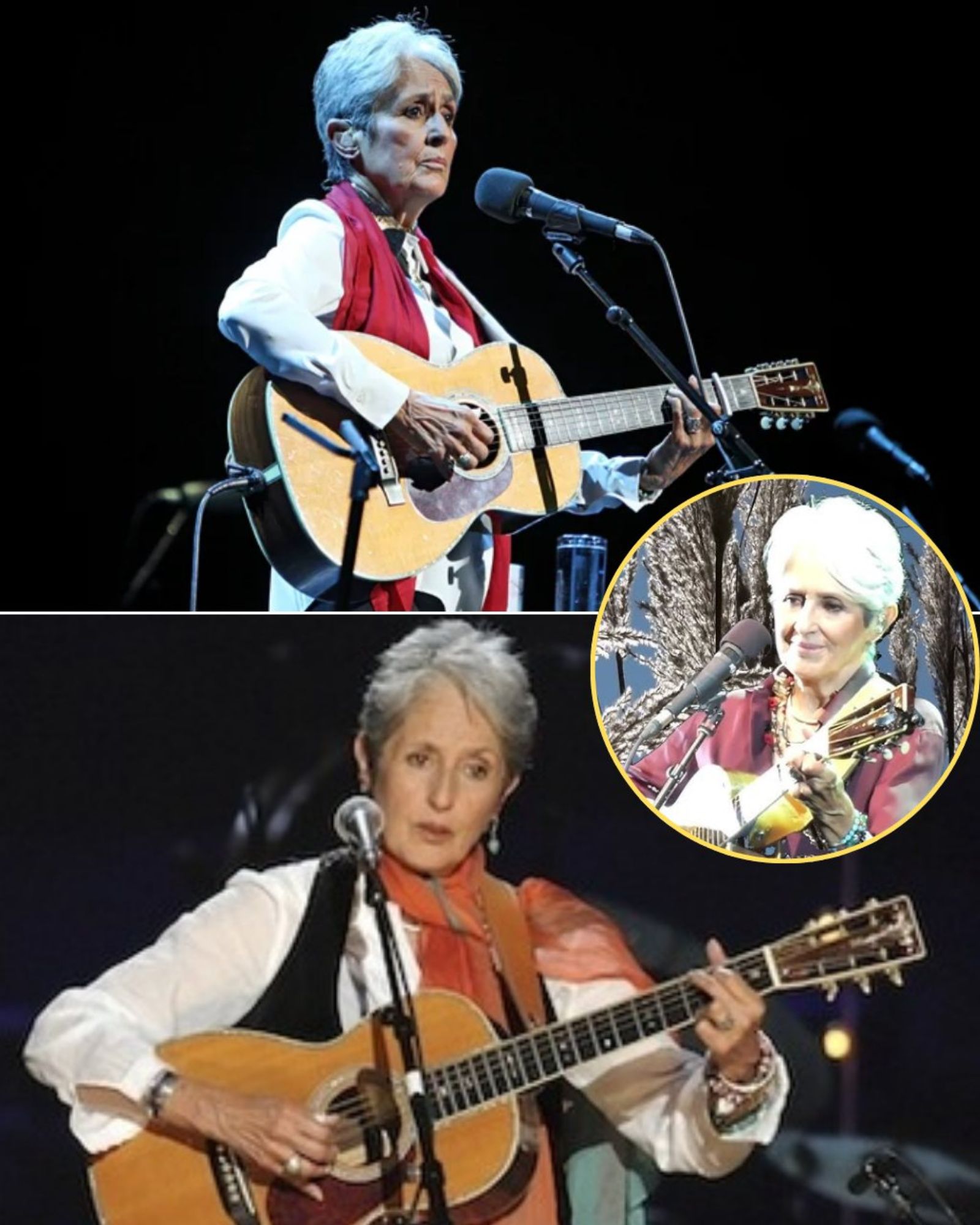 As the final verse arrived, Joan’s voice cracked — not from fatigue, but from emotion. She smiled gently, the kind of smile that says, “I’ve lived through it all, and the song still matters.” Before the last note had even disappeared, the audience rose to their feet. It wasn’t a roar of applause, but a quiet, collective standing — as if in prayer. And long after she left the stage, no one moved. The silence spoke volumes: gratitude, nostalgia, sorrow, admiration — all intertwined in that sacred moment.