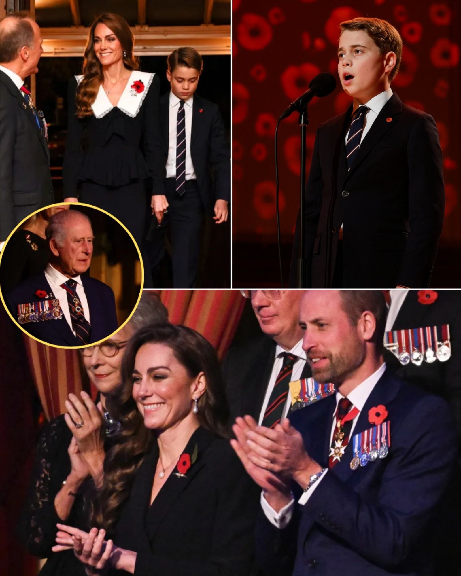 Staying true to tradition, both Princess Kate and Prince George wore dark, elegant ensembles adorned with red poppy pins—the timeless emblem of remembrance inspired by John McCrae’s 1915 poem “In Flanders Fields.” The poppy has been worn since 1921 to pay tribute to fallen soldiers.