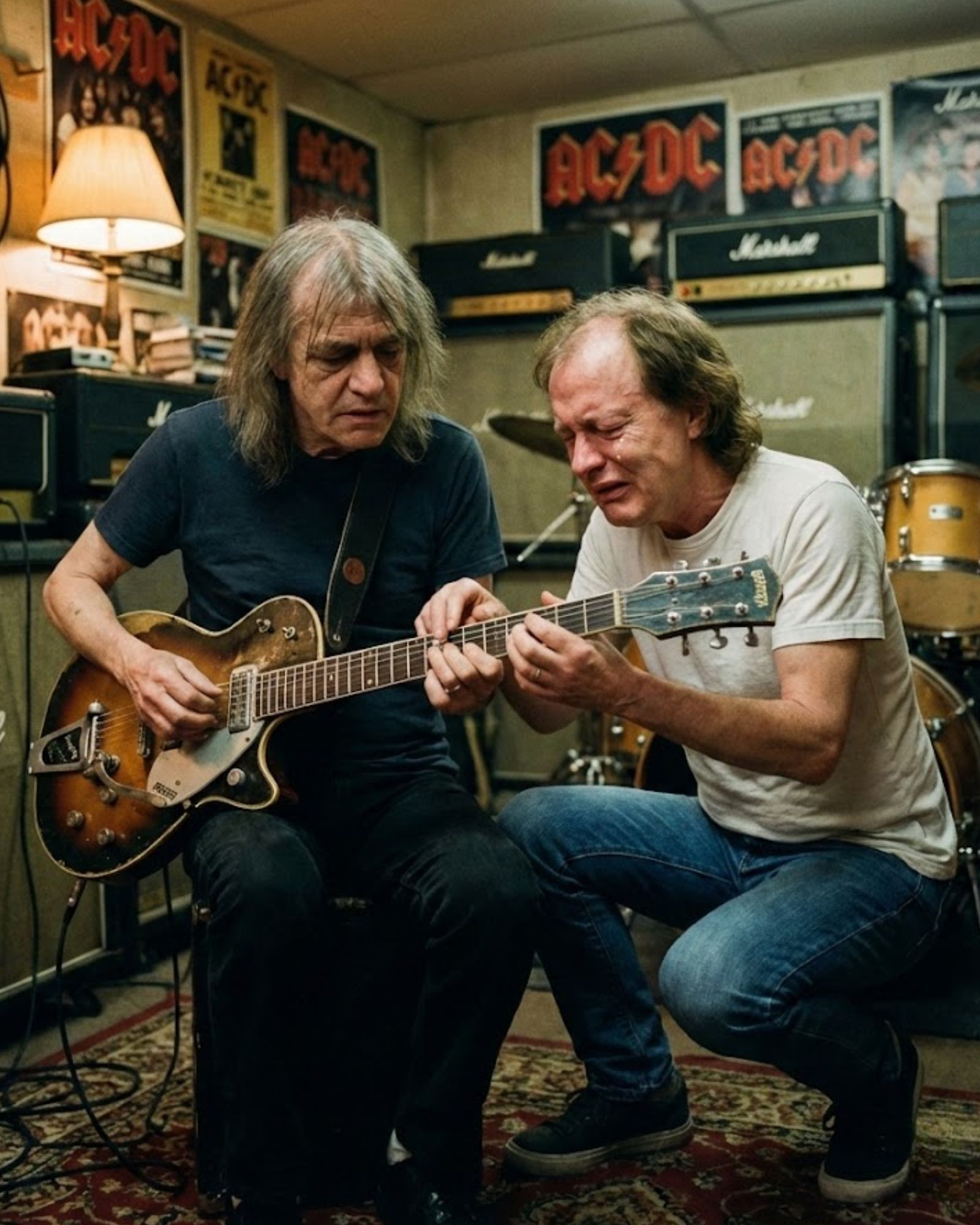 Instead, the younger brother knelt beside the elder. Gently, patiently, Angus took Malcolm’s trembling fingers and placed them on the fretboard. He pressed them down into the familiar shape of the opening chord of “Back in Black.”