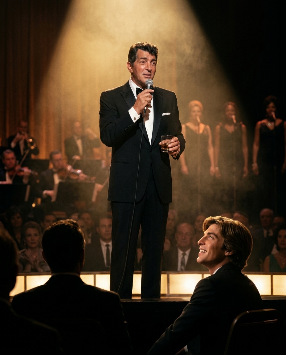 That was how Dean Martin broke the silence. He laughed, slow and warm, and pointed toward Ricci Martin as the room finally exhaled with him. The audience laughed too, partly because Dean Martin had rescued the moment, and partly because everyone in the room understood what they had just witnessed. Even the coolest man in the building had one weakness.