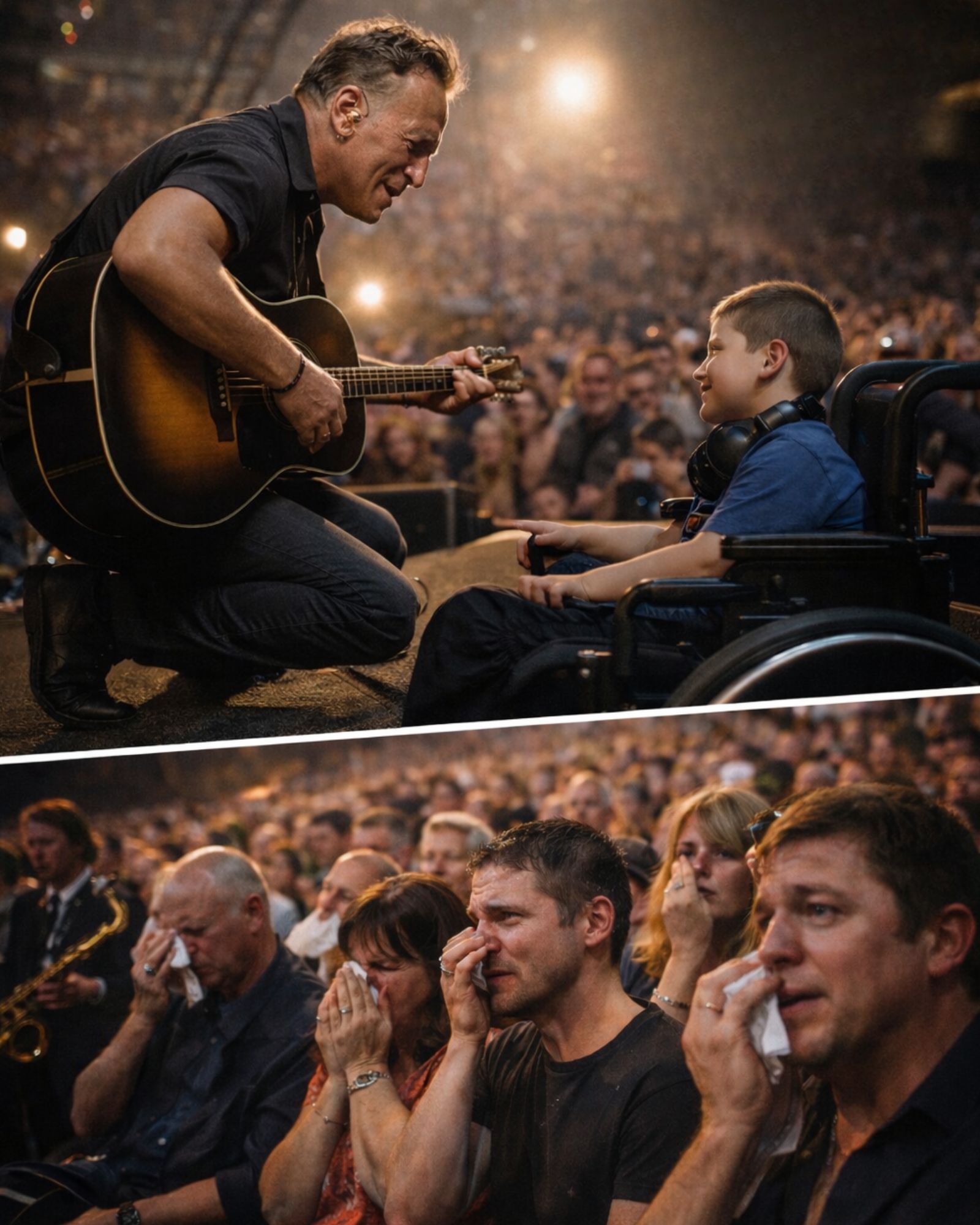 When the final chord faded away, Bruce didn’t stand up immediately. He leaned through the barricade and gently kissed the boy on the forehead.