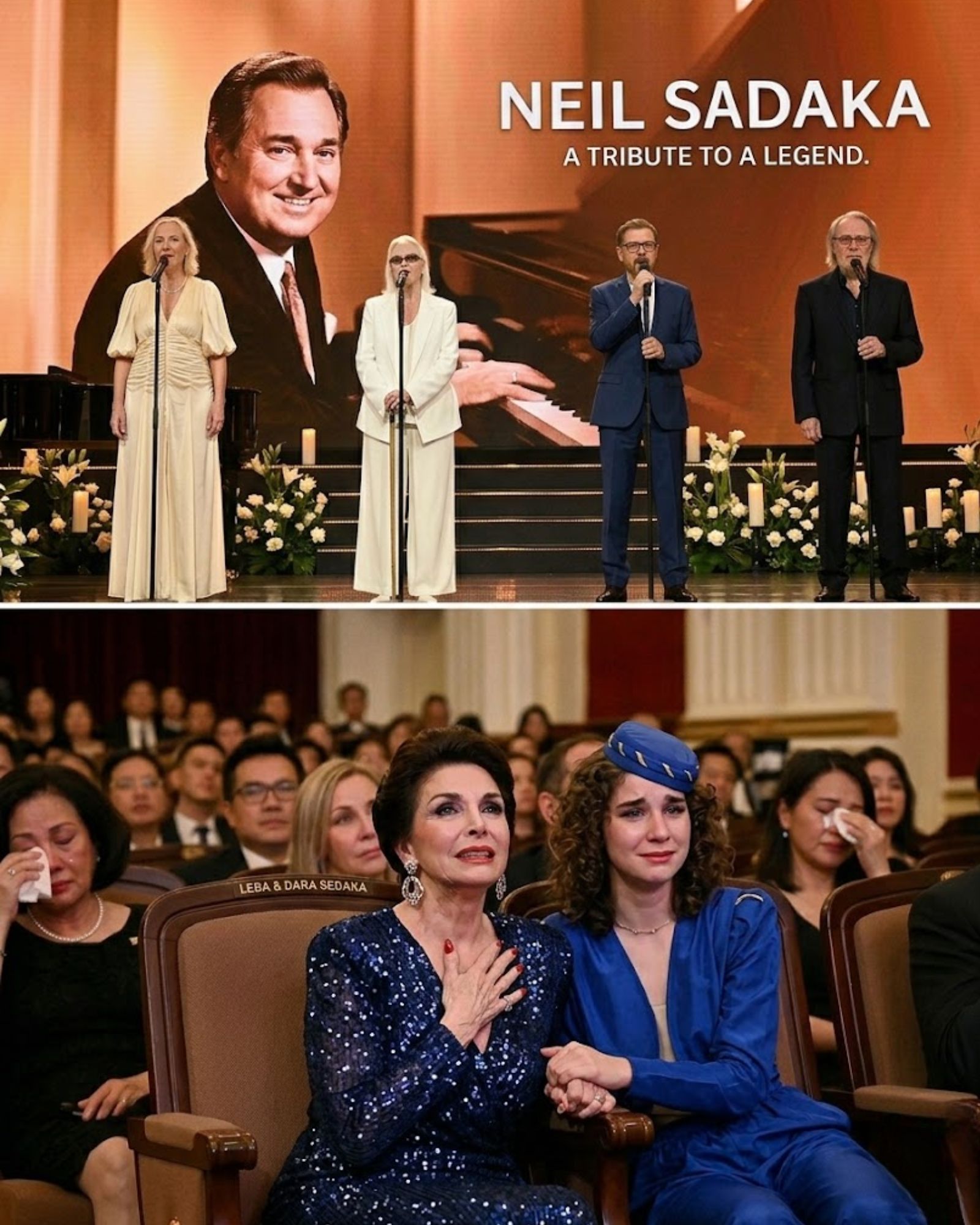 In the front row, Leba — Neil Sedaka’s wife of over 60 years — held their daughter Dara’s hand. Neither moved. Neither had to. Their stillness felt like its own kind of tribute, the kind only family can give: the quiet certainty that says, we were here for all of it.