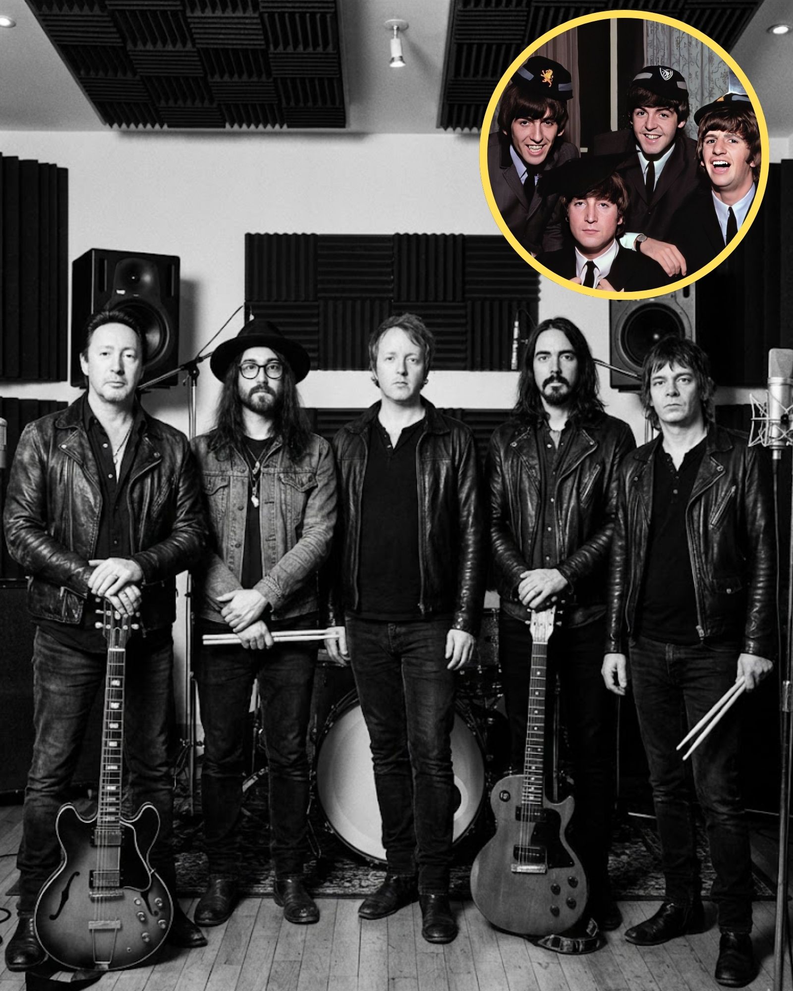 Five men walked into a studio carrying instruments that felt heavier than wood and strings should ever be. Not because of age. Because of memory. Julian Lennon. Sean Lennon. James McCartney. Dhani Harrison. Zak Starkey.